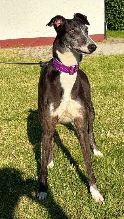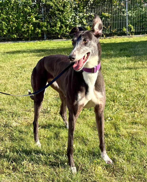 Die zierliche Hündin steckt voller Lebensfreude – auch wenn sie bei unserer Fotostrecke bisher eher wenig Lust hatte, stillzuhalten… wir bleiben dran! 🥰